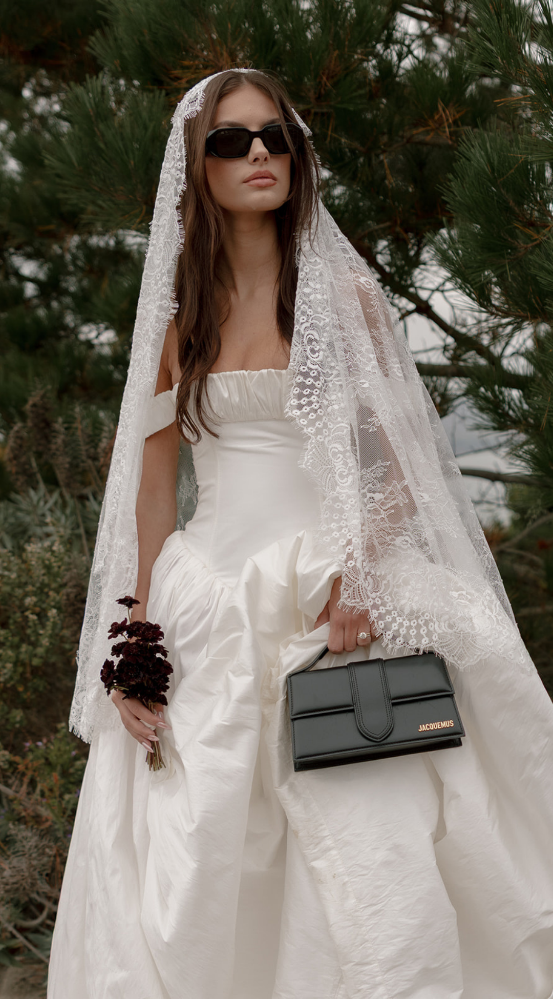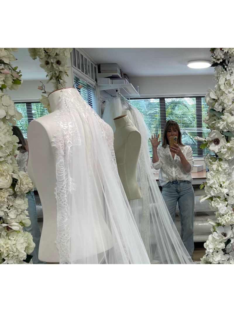 Welcome to our Chantilly Lace Veil Collection at Harriett Falvey, where craftsmanship meets contemporary style. Designed to elevate your wedding wardrobe, and pull everything together. The finishing touch that turns you into the bride you were always supposed to be.