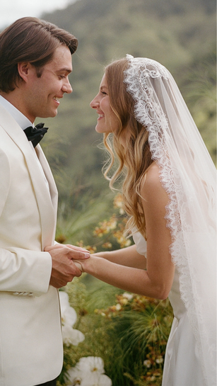Welcome to our Chantilly Lace Veil Collection at Harriett Falvey, where craftsmanship meets contemporary style. Designed to elevate your wedding wardrobe, and pull everything together. The finishing touch that turns you into the bride you were always supposed to be.